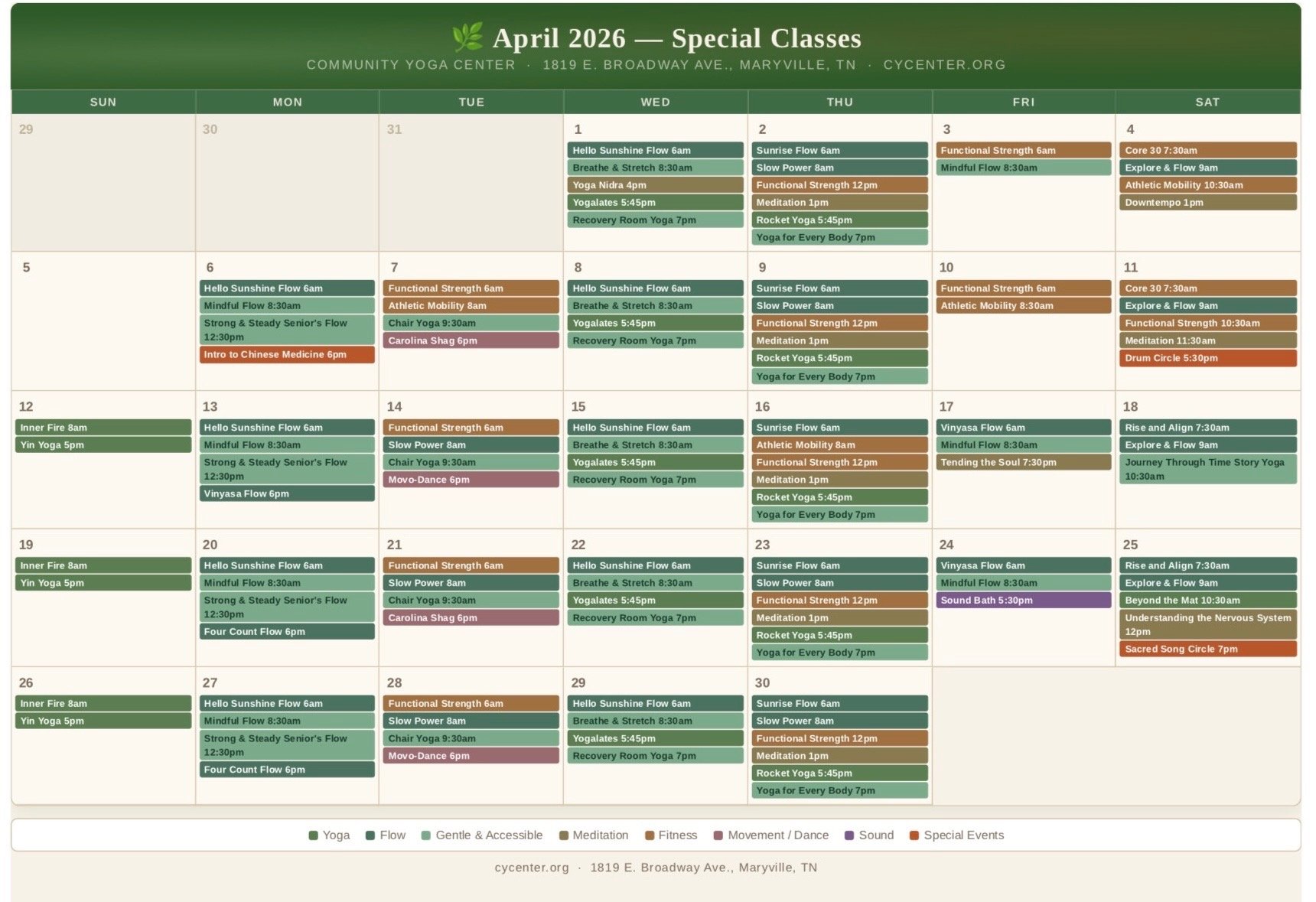 Donation-based classes, workshops, events, and professional healing practitioners—all under one roof.